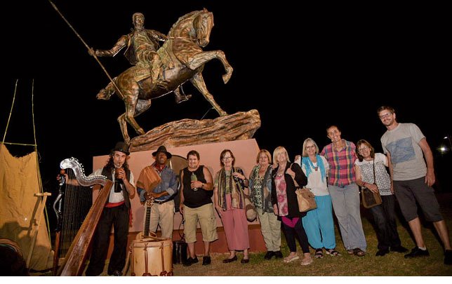 A continuación, los asistentes se dirigieron al Auditorio del Bicentenario, donde se proyectó un video sobre el parque y la historia de la Batalla de Las Piedras. La noche continuó con un recorrido guiado por el parque, donde los visitantes pudieron disfrutar de diversas representaciones históricas, desde escenas de batalla hasta danzas folclóricas evocando el espíritu de Artigas y el ejército oriental. Los relatos históricos cobraron vida en el mismo lugar donde, 214 años atrás, se produjo una de las victorias más emblemáticas de la lucha por la independencia.
