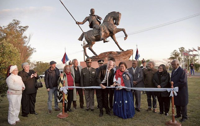 El monumento del escultor Alberto Saravia es una representación ecuestre de Ansina, el fiel soldado de Artigas, en la que aparece montado a caballo y portando una lanza.