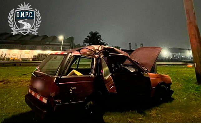 Una joven de 21 años perdió la vida en un siniestro ocurrido en la madrugada de este sábado en la Ruta 5, a la altura del kilómetro 9. El hecho se registró sobre las 05:00, cuando una camioneta que se desplazaba hacia el sur salió de la calzada e impactó contra una columna de alumbrado en el cantero central.