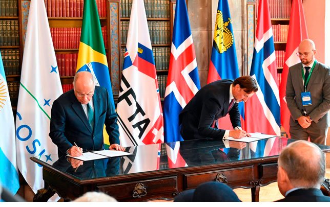 Los países miembros del MERCOSUR (Argentina, Brasil, Paraguay y Uruguay) y los Estados de la EFTA (Islandia, Liechtenstein, Noruega y Suiza) suscribieron un Tratado de Libre Comercio el 16 de septiembre de 2025 en Río de Janeiro, Brasil.